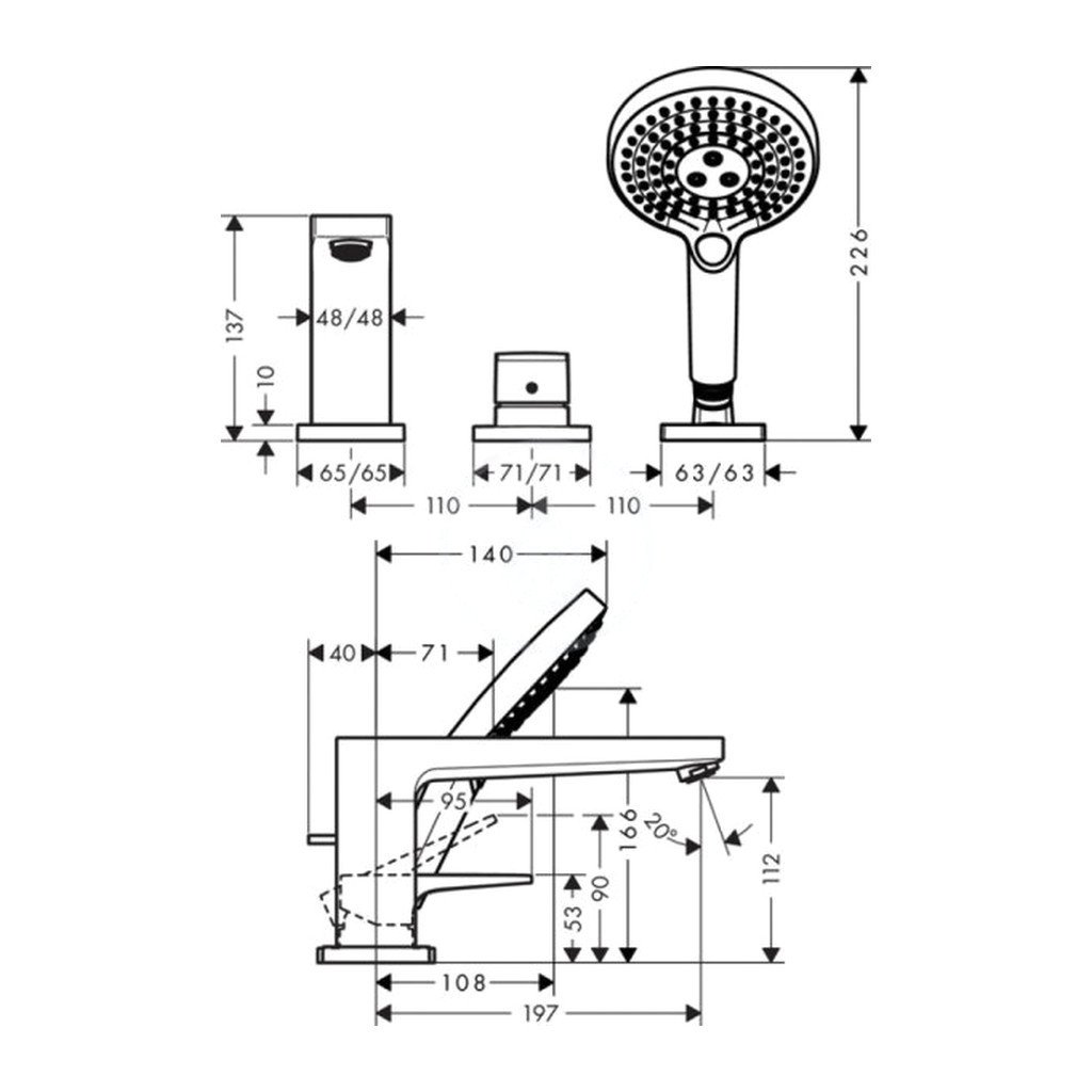 - obsahuje: 3-otvorová páková armatura na okraj vany, ruční sprcha, sprchový držák