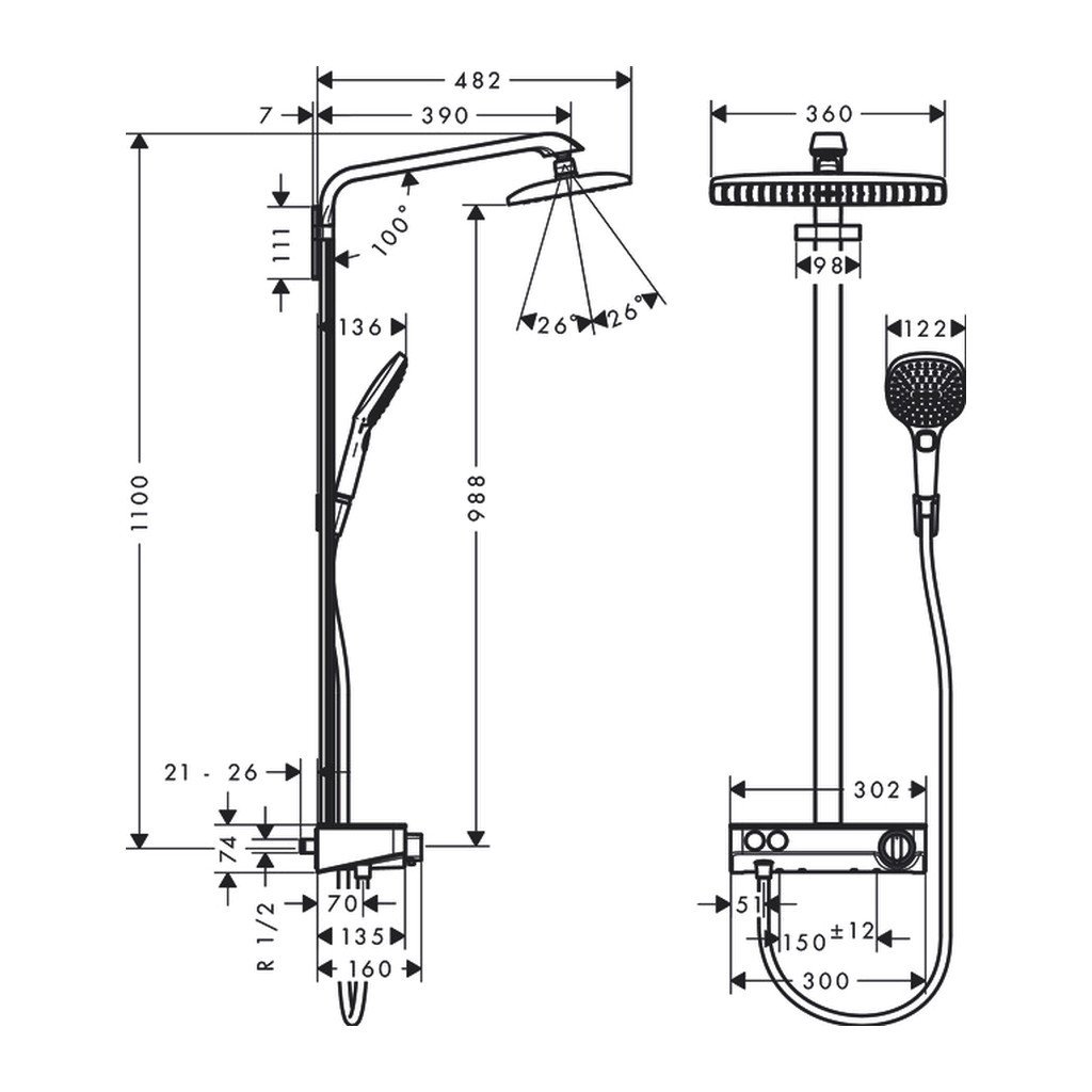 Hansgrohe Raindance E, Showerpipe 360 1jet s termostatem ShowerTablet Select 300, bílá/chromová, HAN-27288400