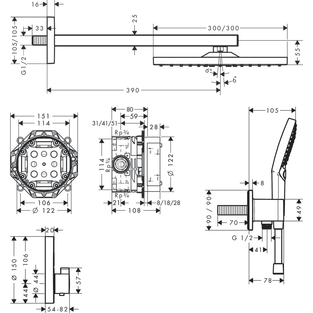 Hansgrohe Raindance E, sprchový systém 300 1jet s termostatem ShowerSelect Square, chromová, HAN-27952000