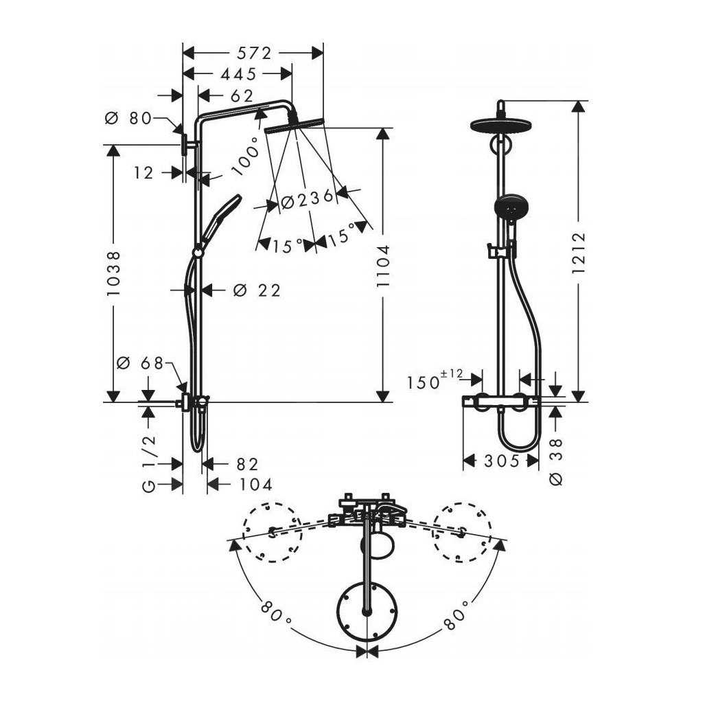 Hansgrohe Raindance S, sprchový set Showerpipe 240 s termostatem, 3 proudy, EcoSmart 9 l/min, chromová, HAN-27116000