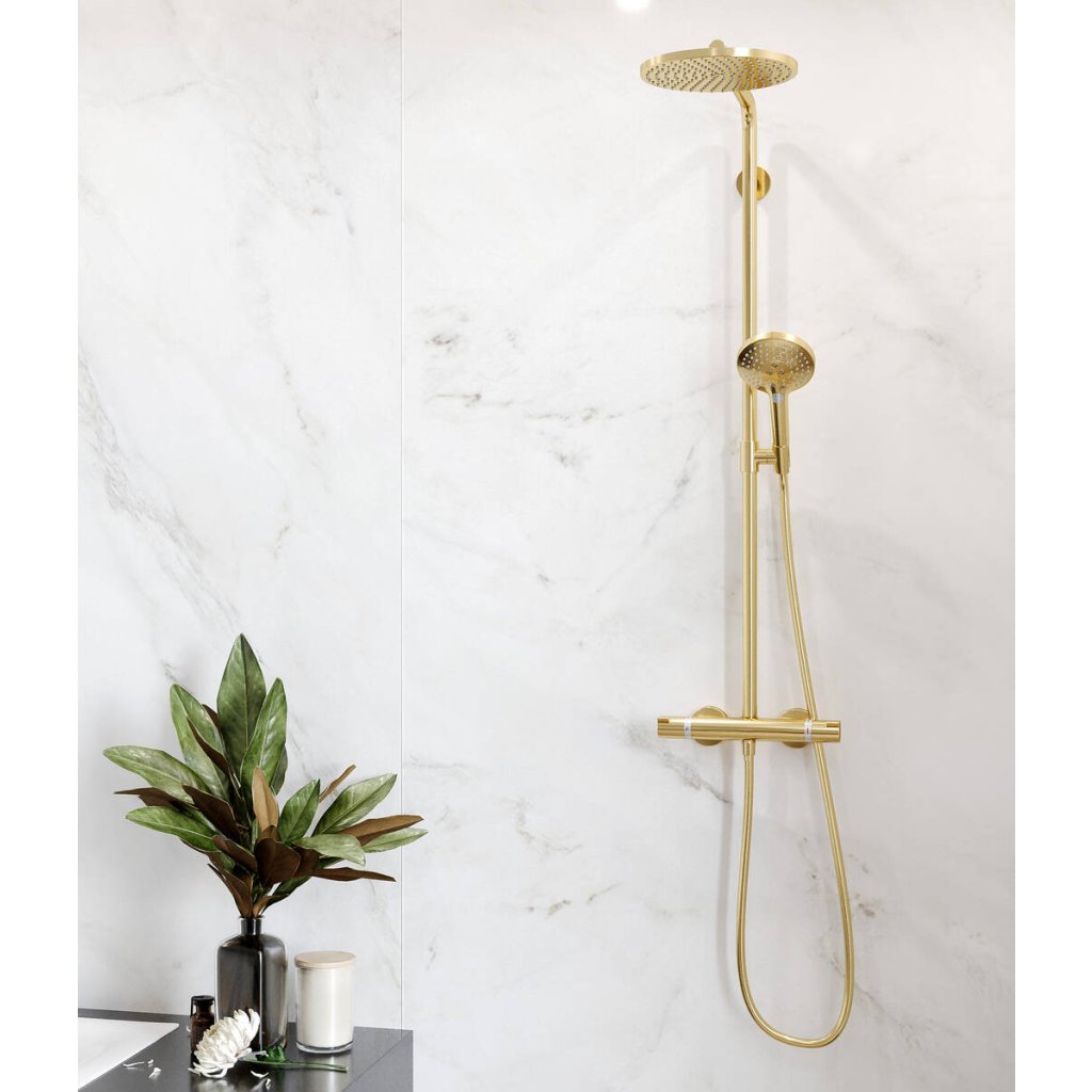 - Zahrnuje: horní sprcha, ruční sprcha, sprchový termostat, sprchová hadice, jezdec, sprchová tyč