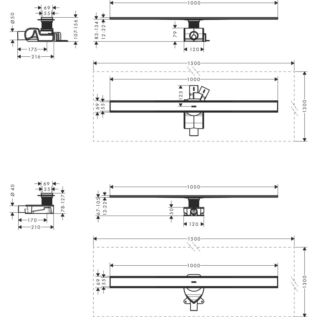 Hansgrohe RainDrain Allround, úplná sada sprchového žlabu 1000 pro standardní/plochou instalaci, nerez, HAN-56189800
