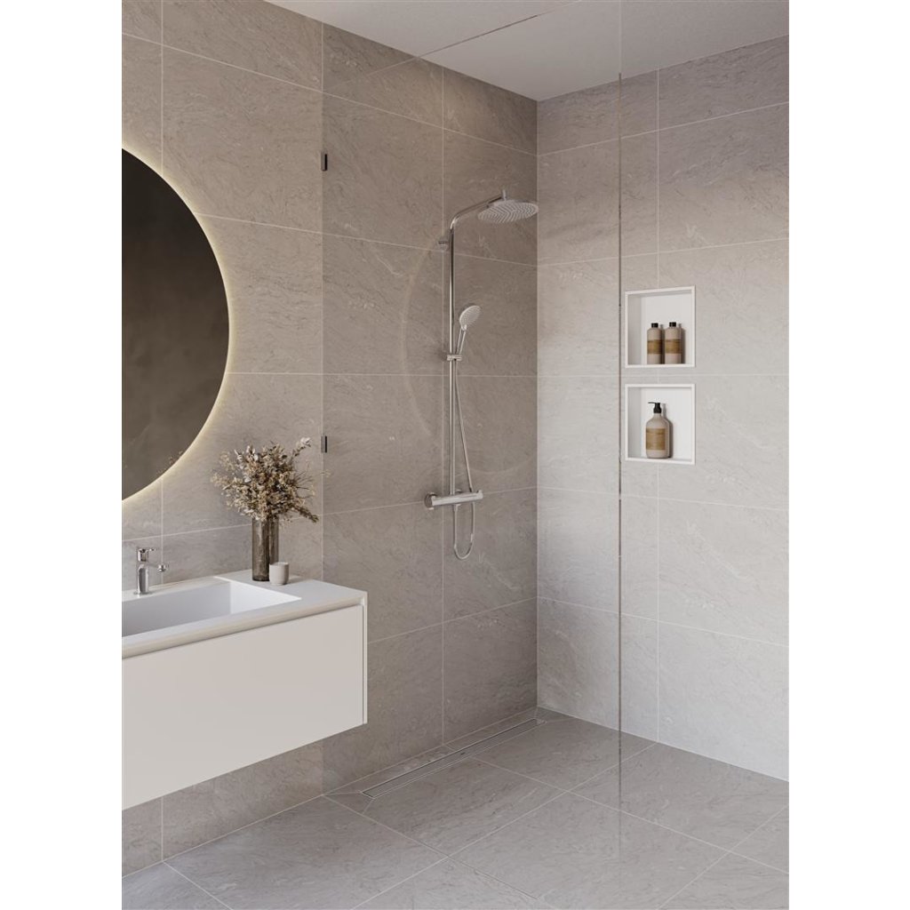 - QuickClean RainDrain : Snadno čistitelný povrch. V určitém bodě se v každém sprchovém žlabu nahromadí nečistoty a vlasy. Tento vysoce kvalitní lineární žlab se snadno čistí: jednoduše sejměte kryt pomocí přiloženého nástroje a v okamžiku odstraňte všechny zbytky.