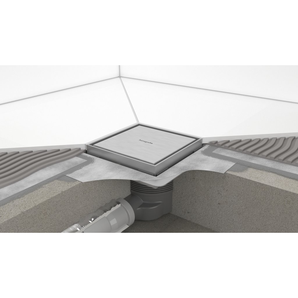 Hansgrohe RainDrain Brilliance, úplná sada podlahové vpusti 150x150 pro dlažbu, kartáčovaná nerezová ocel, HAN-56251800