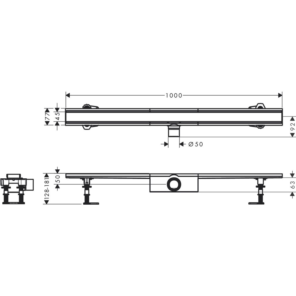 Hansgrohe RainDrain Compact, úplná sada sprchového žlabu 1000 pro standardní instalaci, kartáčovaná nerezová ocel, HAN-56182800