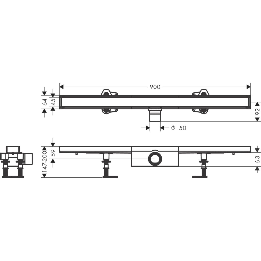 Hansgrohe RainDrain Compact, úplná sada sprchového žlabu 900 pro dlažbu, pro standardní instalaci, HAN-56181000