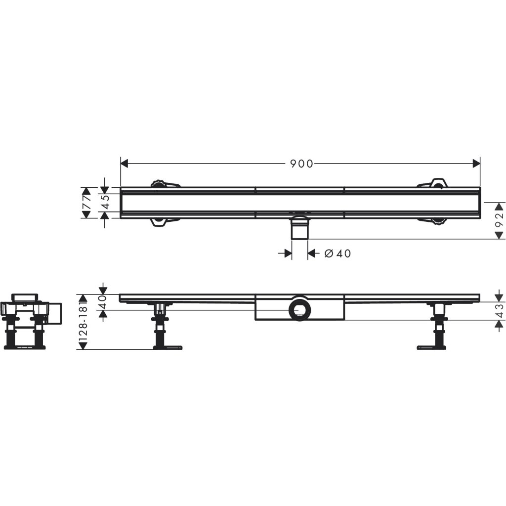 Hansgrohe RainDrain Compact, úplná sada sprchového žlabu 900 pro plochou instalaci, kartáčovaná nerezová ocel, HAN-56168800