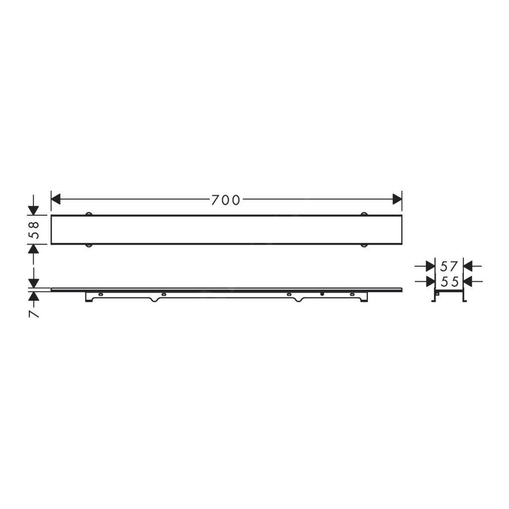Hansgrohe RainDrain Rock, lineární sprchový žlab 600, s roštem pro vložení dlažby, nerezová, HAN-56029000