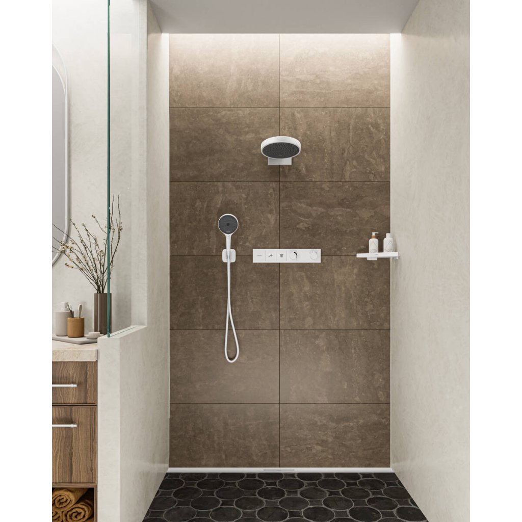 Jedním stisknutím změníte typ proudu či druh sprchy. S tlačítkem Select lze baterie obsluhovat velmi jednoduše. Stisknutím tlačítka se voda nejen spouští a zastavuje, ale také jím lze u ruční nebo horní sprchy přepínat jednotlivé typy trysek. U termostatu lze díky této integrované technice zcela přesně pouštět a zastavovat proud vody i volit různé sprchy. V případě potřeby můžete baterii ovládat bez použití rukou, protože tlačítko lze přepínat intuitivně rukou nebo loktem. Tlačítko Select Hansgrohe garantuje jednoduchost každý den a je ideální pro všechny, kdo ocení komfortní a příjemný zážitek ze sprchování.