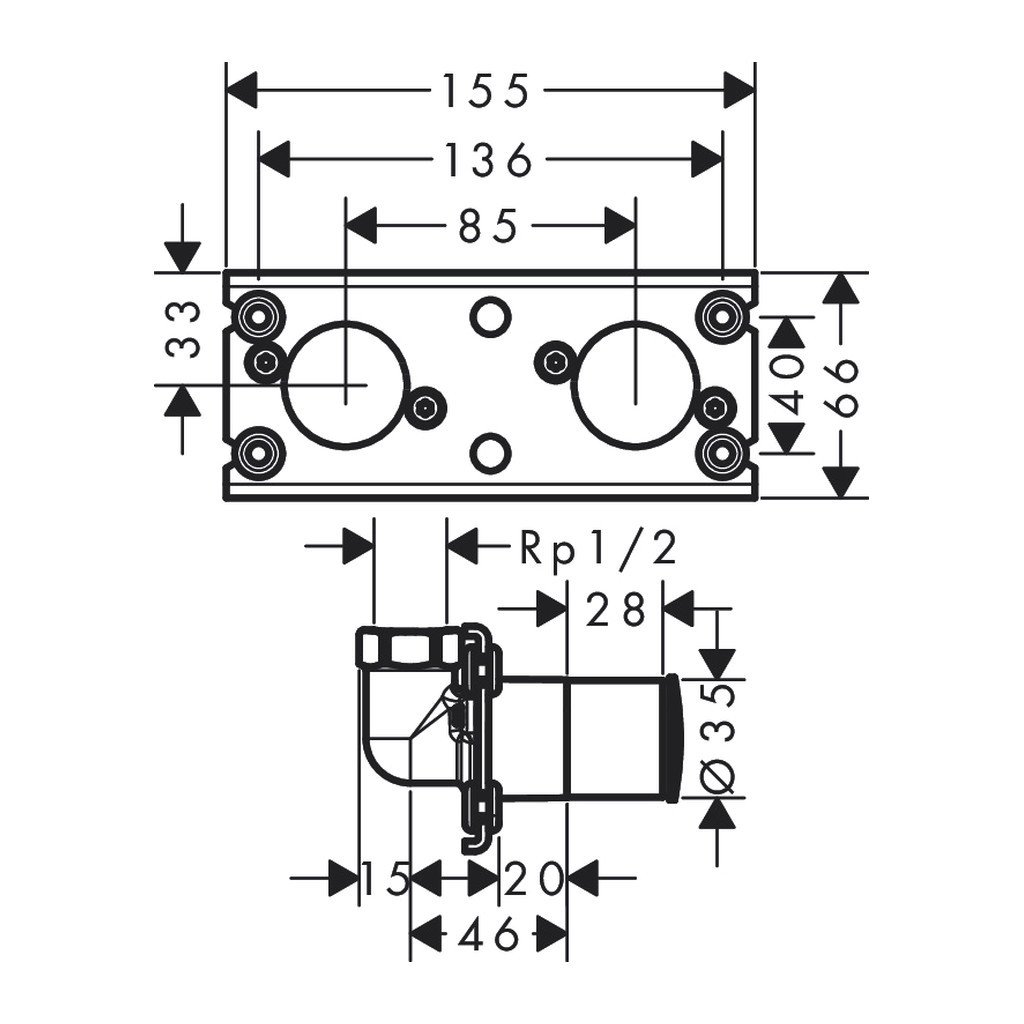Hansgrohe Rainfinity, základní těleso pro sprchový systém s podomítkovou instalací, HAN-26840180