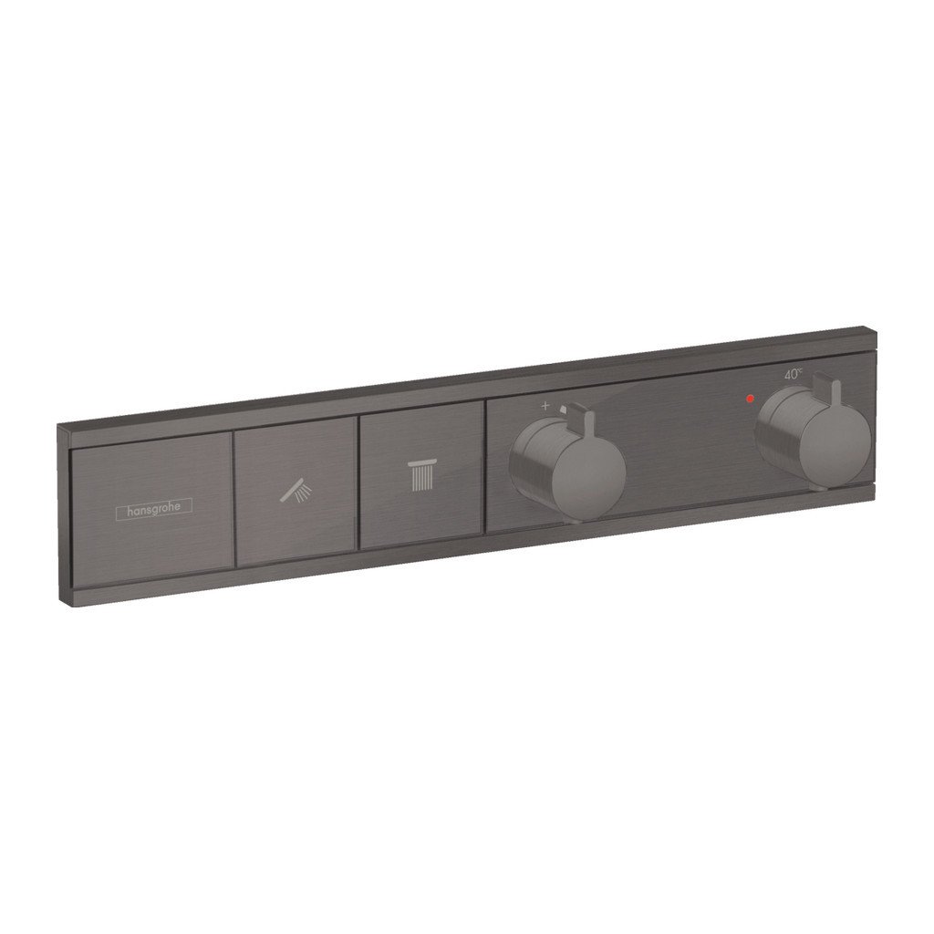Upřednostňujete v koupelně magickou barvu kartáčovaného černého chromu? Dopřejte si ji s hansgrohe RainSelect. Tato podomítková baterie na 2 spotřebiče je působivá, atraktivní a luxusní. Pochází z dílny renomované značky Hansgrohe, což je špička v oboru sanitární techniky. Hansgrohe RainSelect je termostatická. V jejím středu se ukrývá termostatická kartuše, která okamžitě vyrovná tlak vody a udrží jej po celou dobu použití baterie.