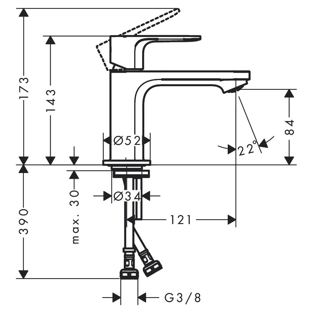 - Způsob připojení: přívodní hadice s převlečnou maticí G ⅜