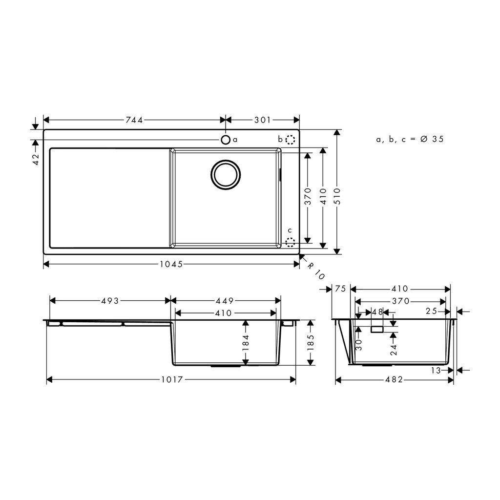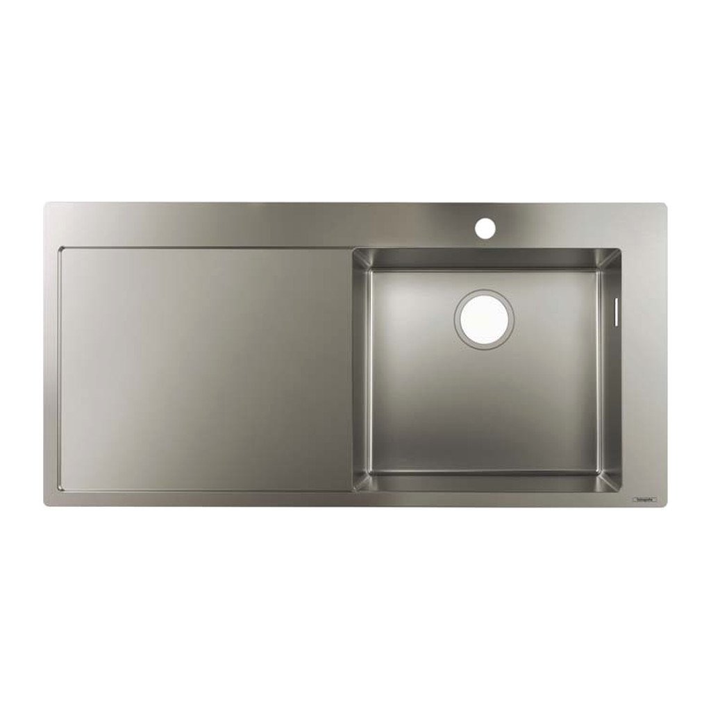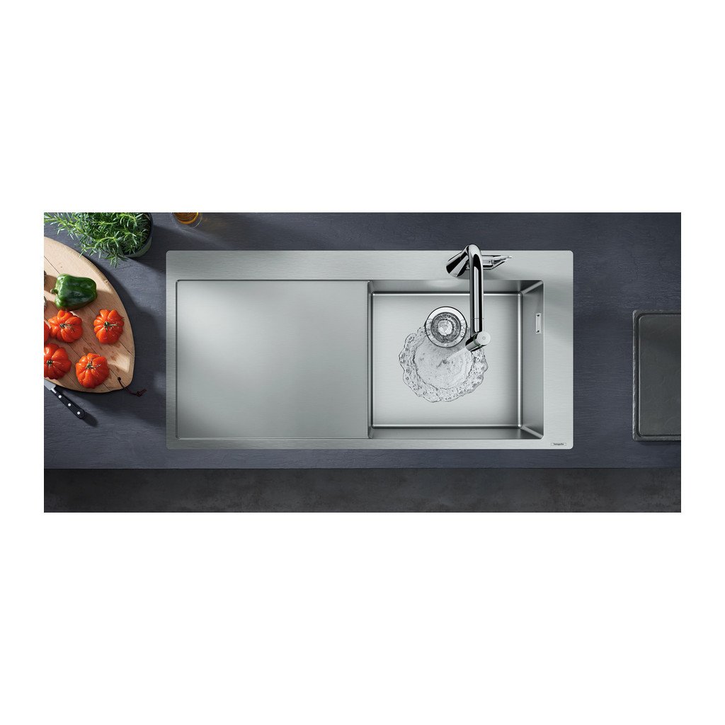 Hansgrohe S71, nerezový dřez 450 vestavný s odkapávací plochou vlevo, nerez, HAN-43306800