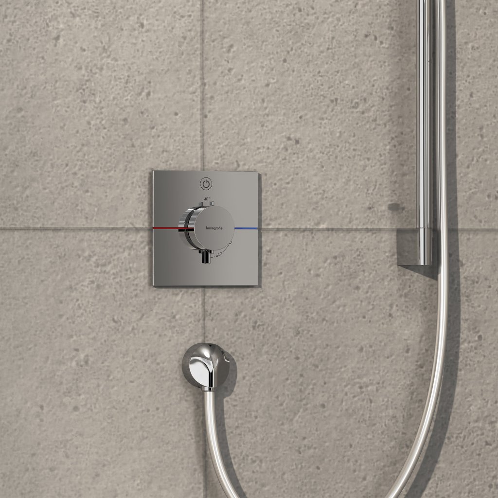 Podomítkový termostat ShowerSelect Comfort E od společnosti hansgrohe vylepšuje design koupelny. Ultraplochý design nabízí více prostoru ve sprše nebo ve vaně díky minimální instalační výšce. Elegantní stínová mezera vytváří dojem, že se termostatická baterie zdánlivě ve stavu beztíže vznáší před stěnou.
