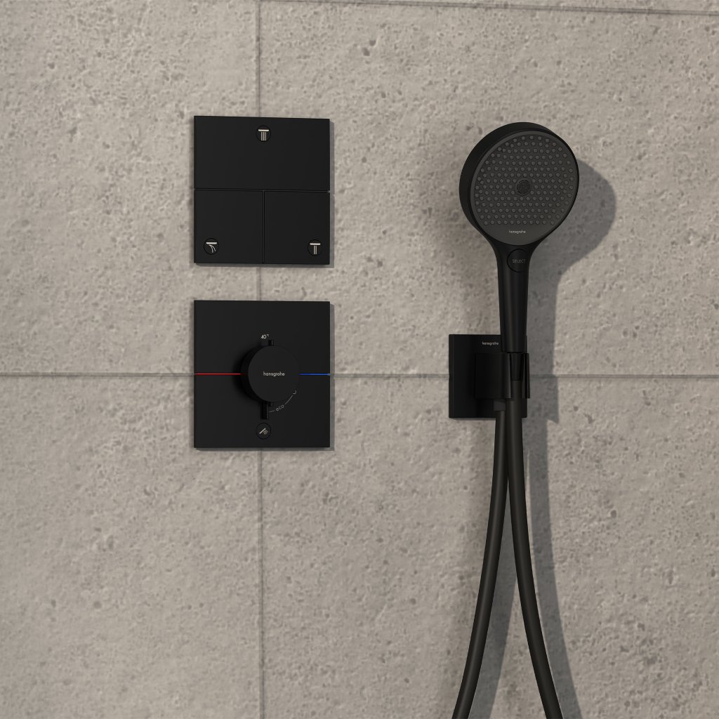 Hansgrohe ShowerSelect Comfort E, termostat pod omítku pro 1 spotřebič a další výtok, černá matná, HAN-15575670