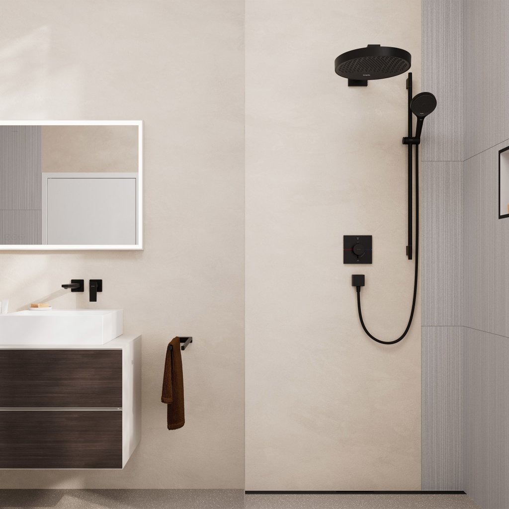 Podomítkový termostat ShowerSelect Comfort E od společnosti hansgrohe vylepšuje design koupelny. Ultraplochý design nabízí více prostoru ve sprše nebo ve vaně díky minimální instalační výšce. Elegantní stínová mezera vytváří dojem, že se termostatická baterie zdánlivě ve stavu beztíže vznáší před stěnou.