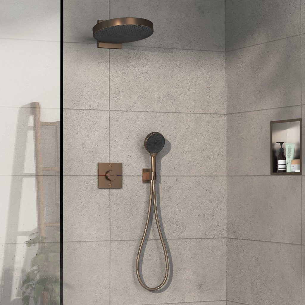 Hansgrohe ShowerSelect Comfort E, termostat pod omítku pro 2 spotřebiče s EN1717, kartáčovaný bronz, HAN-15578140