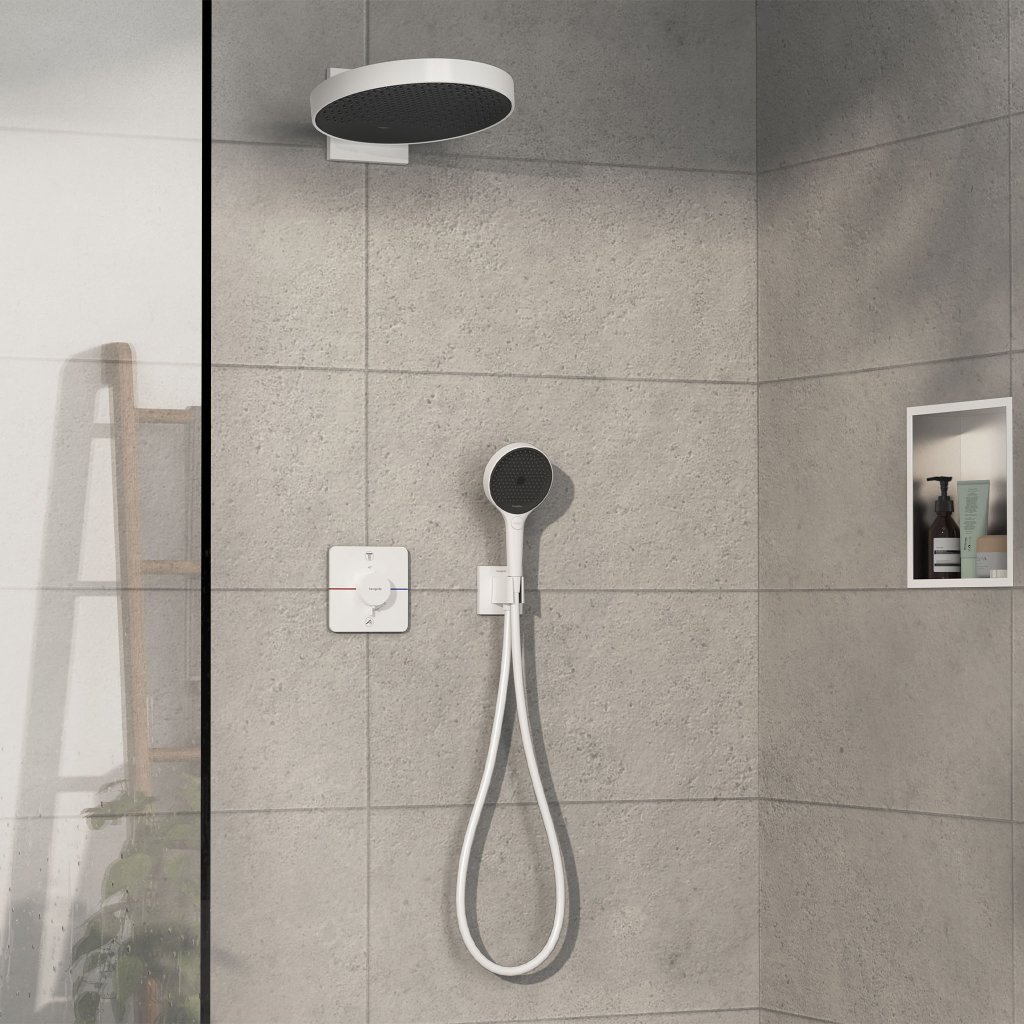 Podomítkový termostat ShowerSelect Comfort Q společnosti hansgrohe je první volbou, kdy je přívod vody pod úrovní hladiny vody (např. hansgrohe Exafill) díky ochraně proti zpětnému toku podle normy EN1717. Zároveň designově zvýrazňuje koupelnu. Ultraplochý design nabízí více prostoru ve sprše nebo ve vaně díky minimální instalační výšce. Elegantní stínová mezera vytváří dojem, že se termostatická baterie zdánlivě ve stavu beztíže vznáší před stěnou.