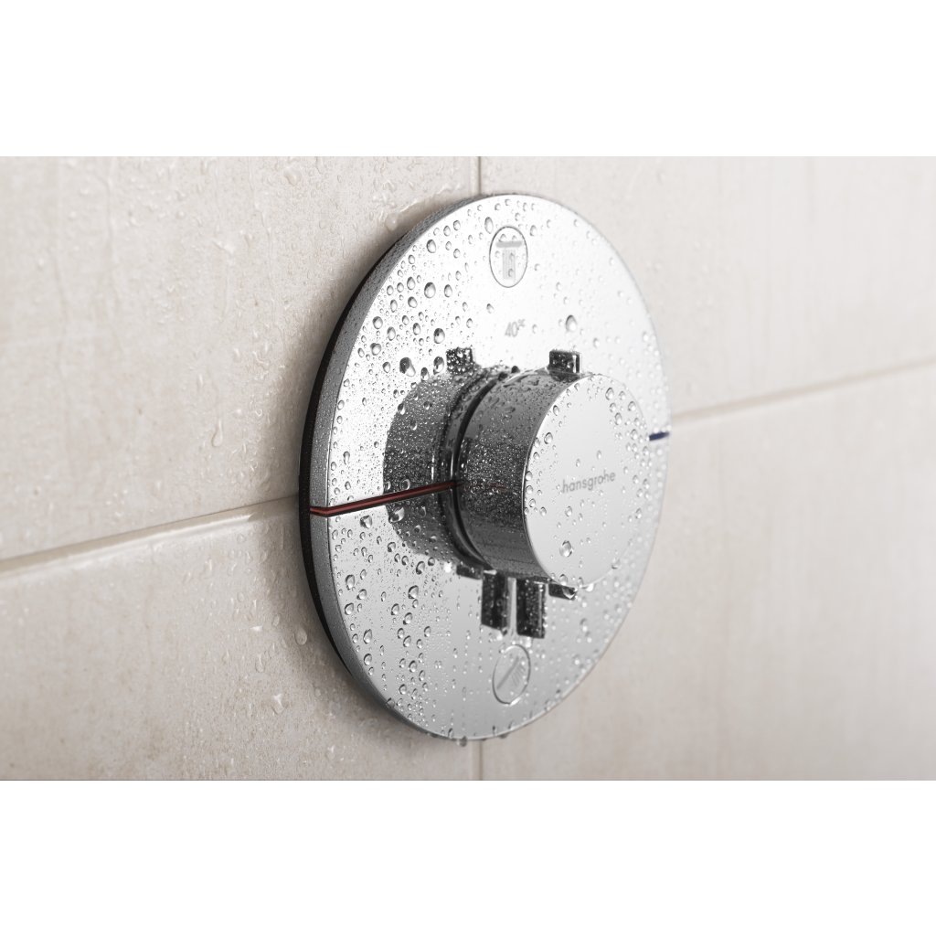 Podomítkový termostat ShowerSelect Comfort S společnosti hansgrohe je první volbou, když je přívod vody pod úrovní hladiny vody (např. hansgrohe Exafill) díky ochraně proti zpětnému toku podle normy EN1717. Zároveň designově zvýrazňuje koupelnu. Ultraplochý design nabízí více prostoru ve sprše nebo ve vaně díky minimální instalační výšce. Elegantní stínová mezera vytváří dojem, že se termostatická baterie zdánlivě ve stavu beztíže vznáší před stěnou.