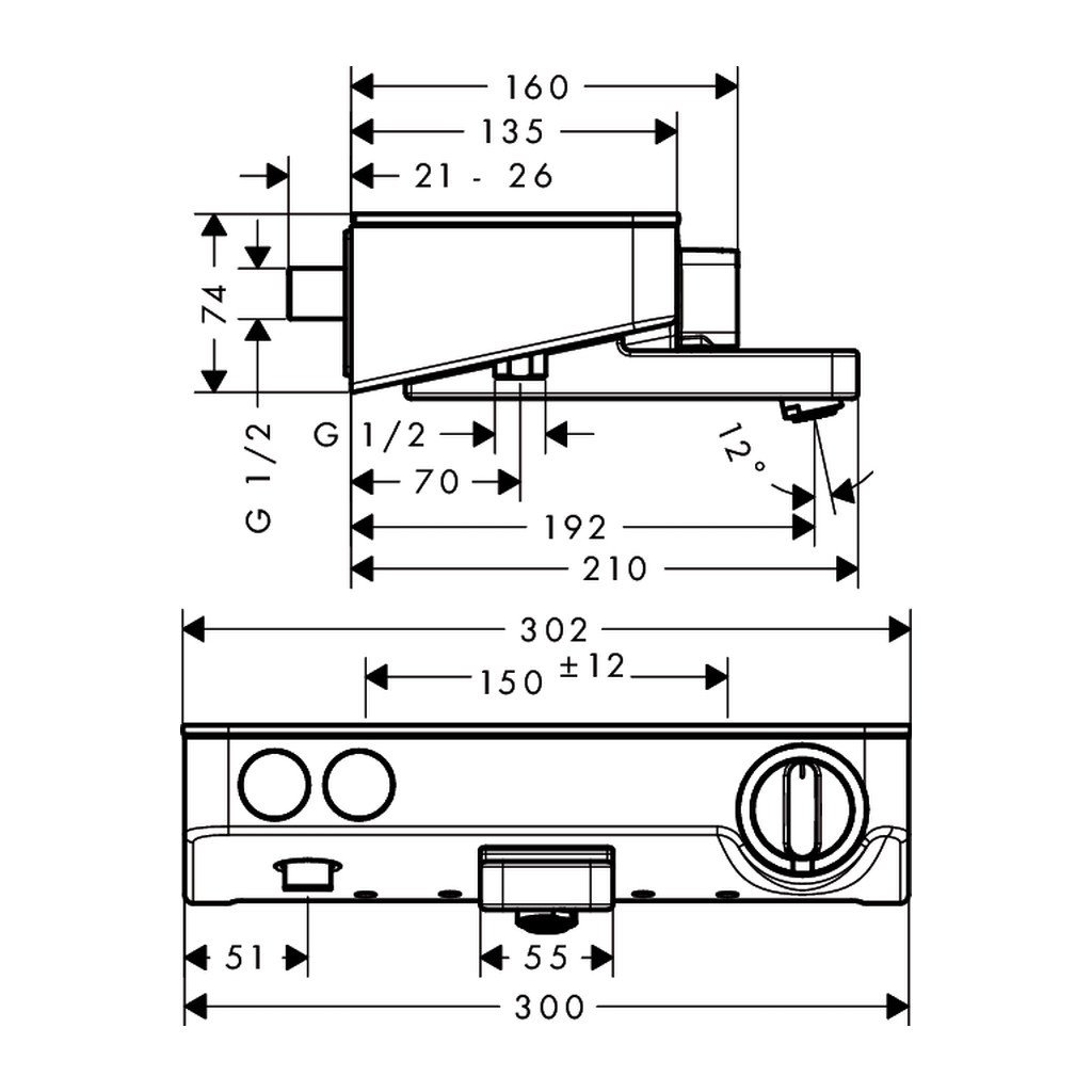 Vanová termostatická baterie Hansgrohe ShowerTablet Select 300 představuje spolehlivé ovládání na vanu a ruční sprchu. Charakterizuje ji atraktivní design, výjimečná kvalita a důmyslná bezpečnostní opatření. Je určena k instalaci na zeď a nabízí intuitivní ovládání: Teplotu snadno nastavíte otočným knoflíkem.