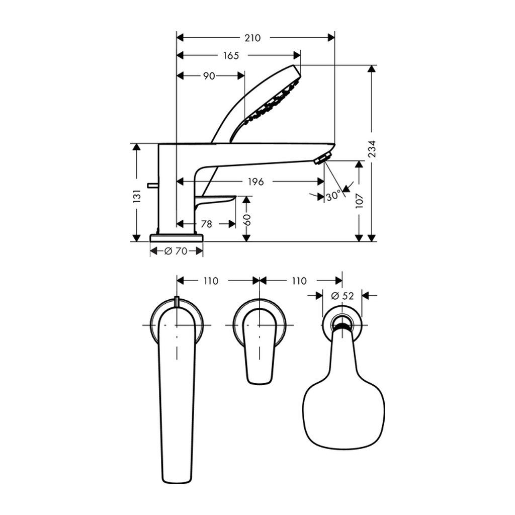 - Typ: obsahuje: 3-otvorová páková armatura na okraj vany, ruční sprcha
