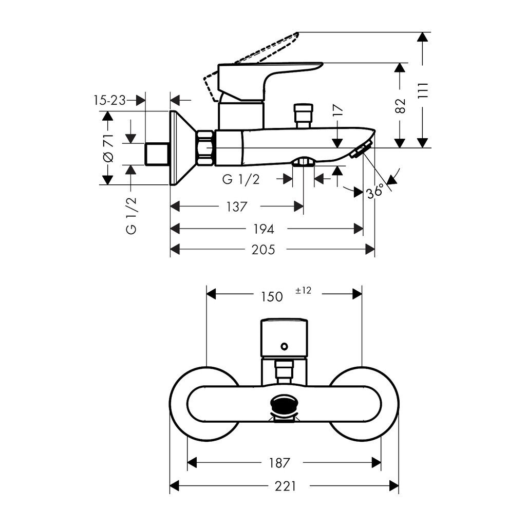 Hansgrohe Talis E, nástěnná páková vanová baterie, kartáčovaná černá chromová, 71740340