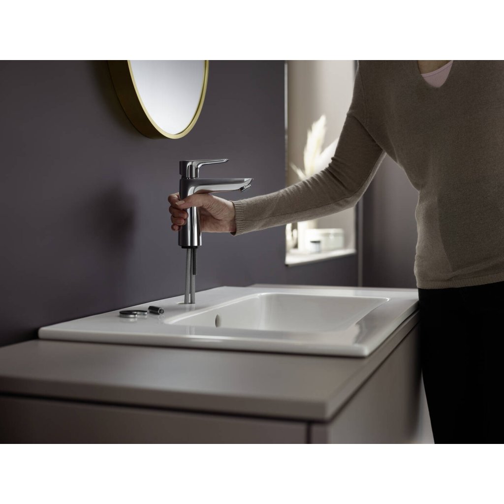 Umyvadlová baterie je podstatným koupelnovým spotřebičem, který musí splňovat vysoké nároky na kvalitu, bezpečnost a spolehlivost. Umyvadlová baterie Hansgrohe Talis E k tomu ještě přidává estetickou vyváženost, perfektní provedení i nejmenších detailů a moderní praktické vlastnosti. Základem baterie je hladké tělo o délce výtoku 112 mm. Získáte tak dostatek prostoru pro umytí rukou, vlasů nebo tlapek domácích mazlíčků. Díky dostatečné vzdálenosti mezi výtokem a hranou umyvadla (ComfortZone) nedochází k rozstřikování vody. Mezi přednosti baterie patří také hladké nastavování intenzity a teploty vody prostřednictvím kovové páky. Za bezproblémovým chodem stojí keramická kartuše, která brání nepříjemnému přeskakování. Výhodou umyvadlové baterie je také nastavitelný omezovač teploty, který vás chrání před rizikem popálení a zároveň vám umožňuje mít náklady na teplou vodu pod kontrolou. Díky technologii EcoSmart jsou kapky vody navíc obohaceny o vzduch, čímž se stávají plnější a jemnější. Zároveň dochází ik podstatné úspoře vodních zdrojů.