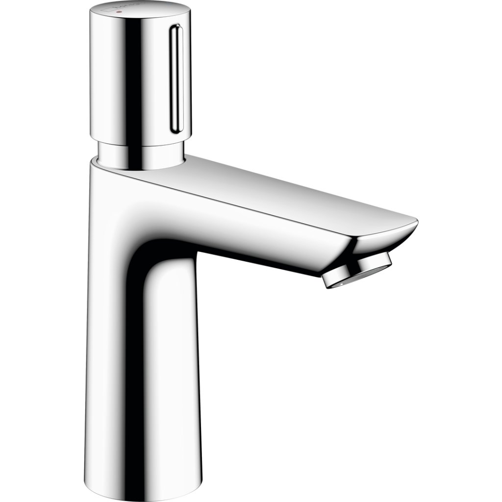 Tato umyvadlová baterie je vybavena kohoutkovým a tlačítkovým ovládáním . Vzhledem k automatickému uzavírání vody si můžete sami nastavit dobu toku – od 3 do 20 sekund. Z výroby je délka toku proudu vody nastavena na 7 sekund. Hodí se pro terminální dezinfekci. Hansgrohe Talis E je vysoká 184 mm. Délka výtoku je 111 mm a komfortní zóna měří 110 mm.