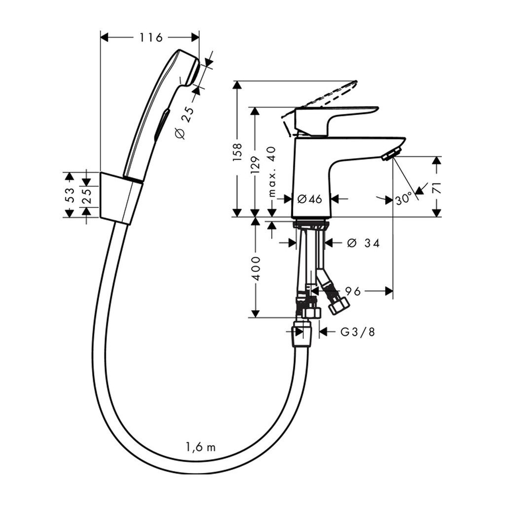 Hansgrohe Talis E, umyvadlová baterie s ruční sprchou Bidette a sprchovou hadicí 160 cm, chromová, 71729000