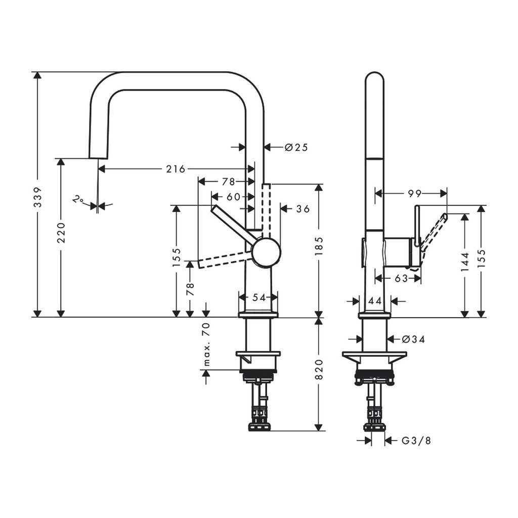 Hansgrohe Talis M54, páková kuchyňská baterie U 220, Eco, 1jet, chromová, HAN-72844000