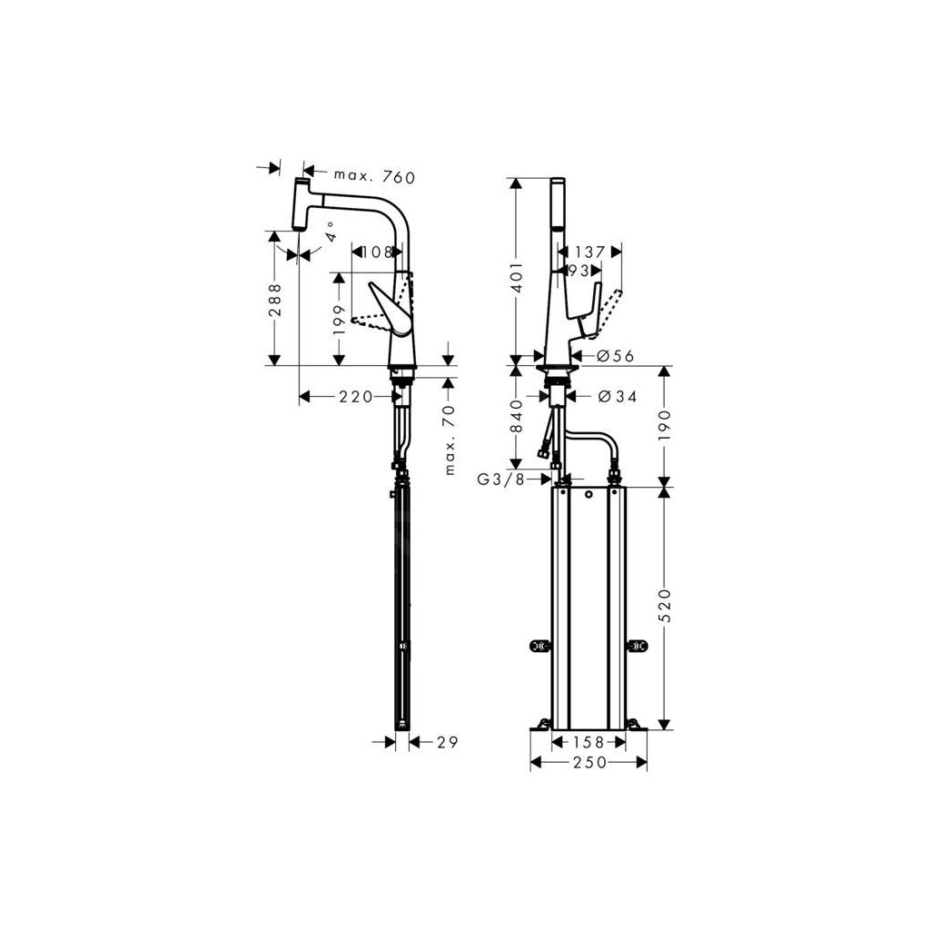 - hadice se vytahuje až 76 cm a zaručuje příjemnou práci a volnost pohybu v okolí dřezu