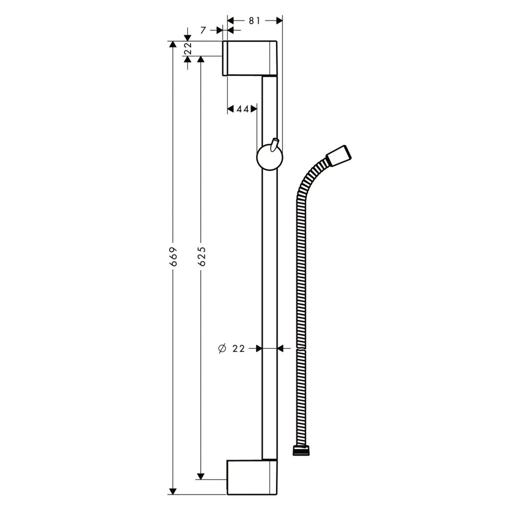 Hansgrohe Unica, Crometta sprchová tyč 650 mm se sprchovou hadicí Metaflex 1600 mm, chromová, HAN-27615000