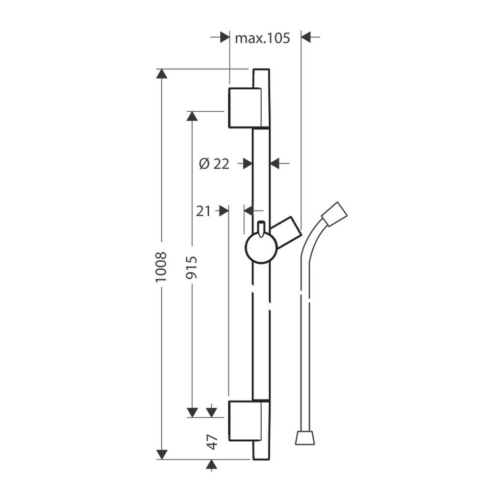Hansgrohe Unica, S Puro sprchová tyč 900 mm se sprchovou hadicí Isiflex 1600 mm, kartáčovaný nikl, HAN-28631820
