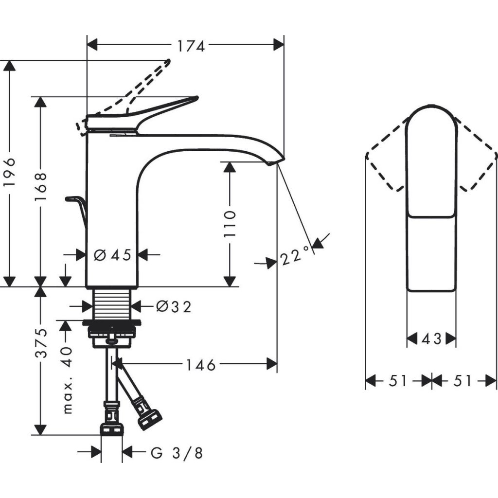 - délka výtoku: 146 mm