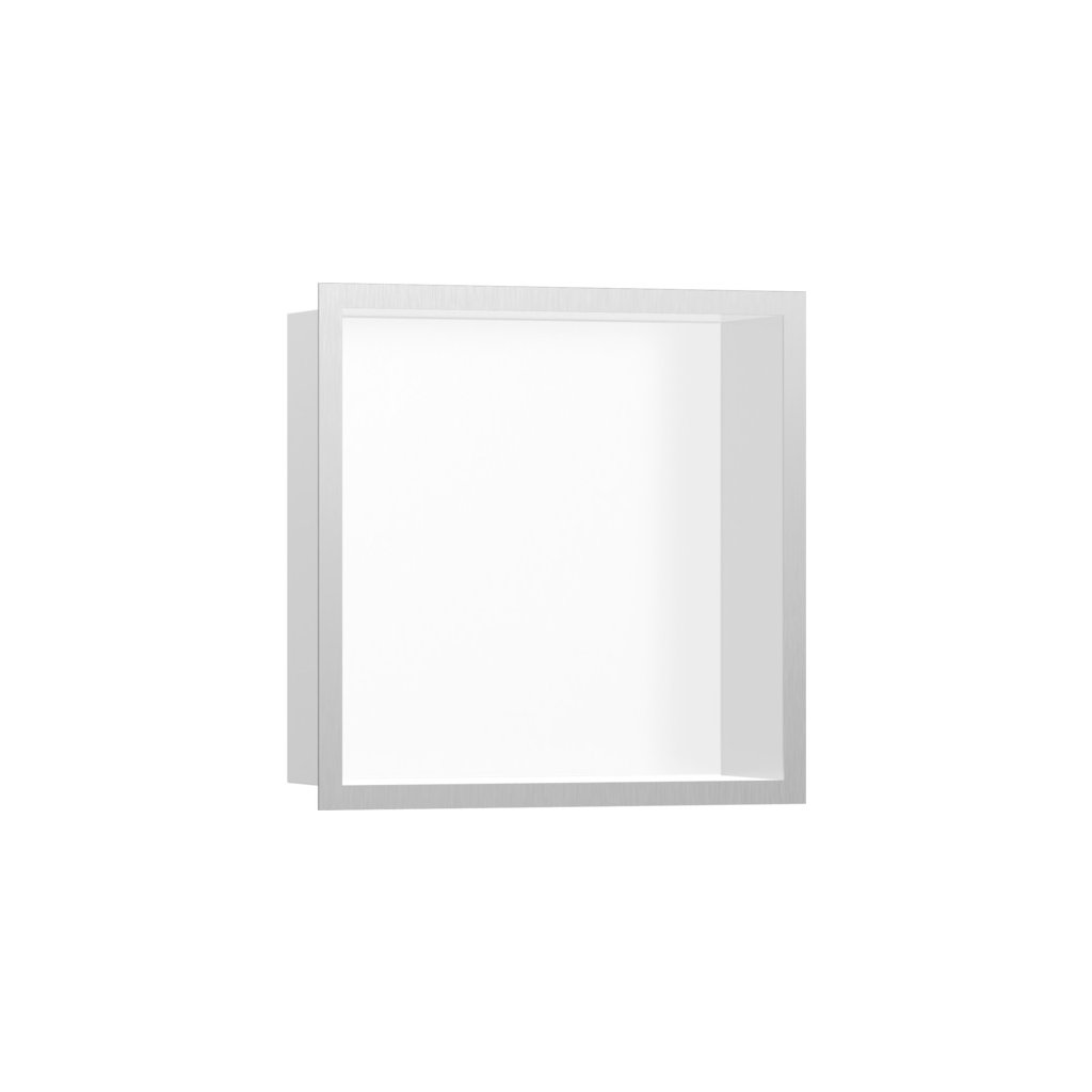 Hansgrohe XtraStoris Individual, výklenek do zdi matný bílý s designovým rámem 300x300x100mm, kartáčovaná nerezová ocel, HAN-56099800