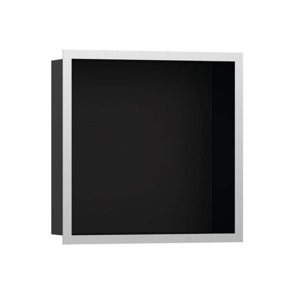 Hansgrohe XtraStoris Individual, výklenek do zdi matný černý, s designovým rámem 300x300x100mm, kartáčovaná nerezová ocel, HAN-56098800