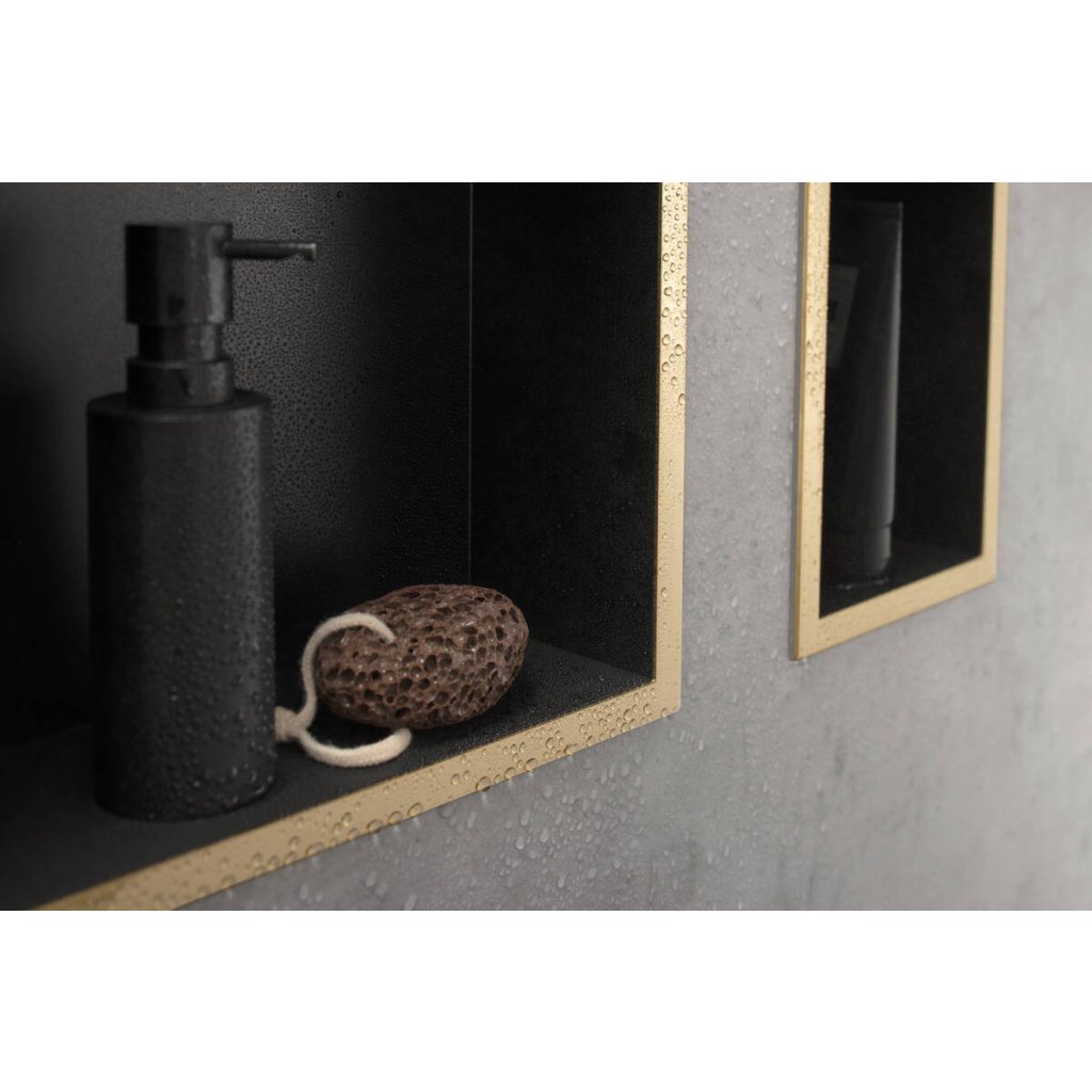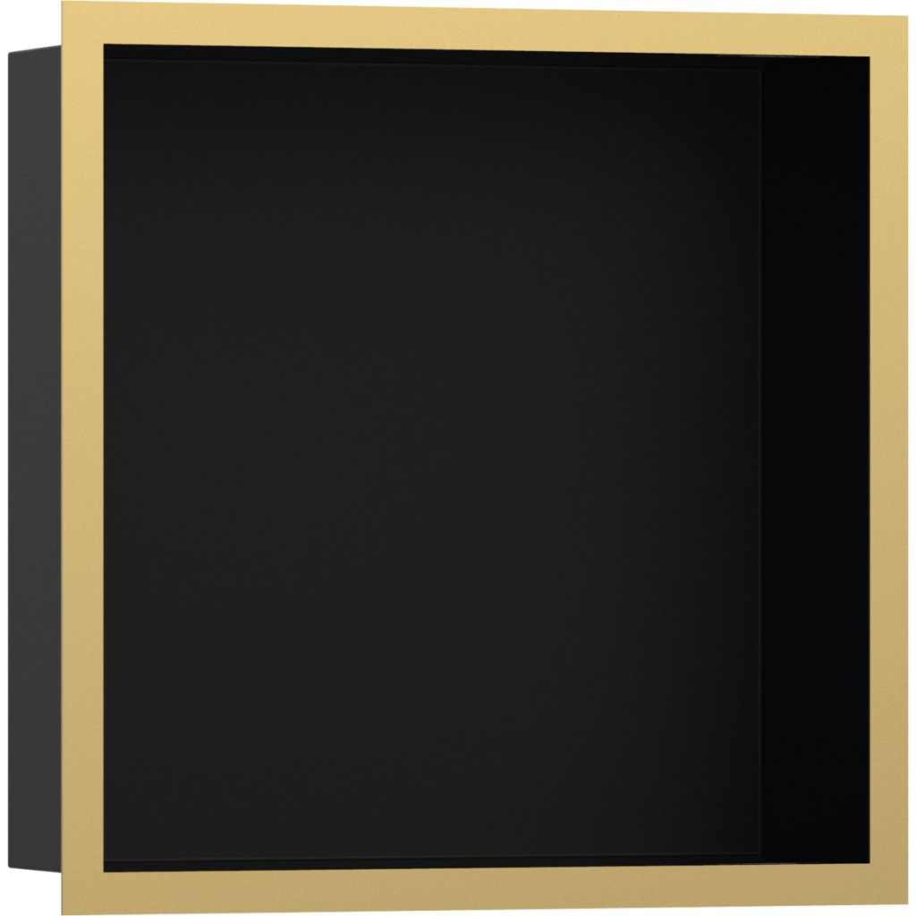 Hansgrohe XtraStoris Individual, výklenek do zdi matný černý, s designovým rámem 300x300x100mm, leštěný vzhled zlata, HAN-56098990