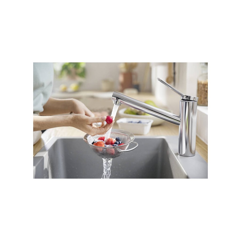 - Díky technologii CoolStart teplá voda pojede až při pohybu páky, studená voda v poloze uprostřed. Tato technologie šetří zdroje, emise C02 a náklady.
