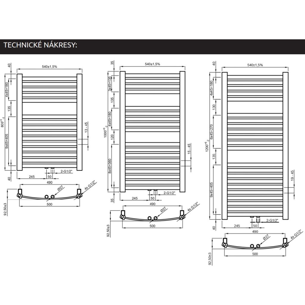 ✓ univerzální a nejběžnější varianty připojení jakéhokoli modelu radiátoru: dolní střední D50(50 mm), dolní osové 500 mm,