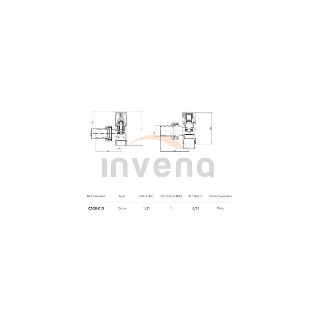 Invena, úhlový regulační ventil 1/2coll a uzavírací ventil, chromová, INV-CZ-30-K15-S