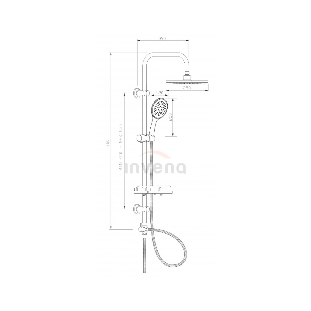 - Typ: sprchový sloup s poličkou, výška: 96 cm