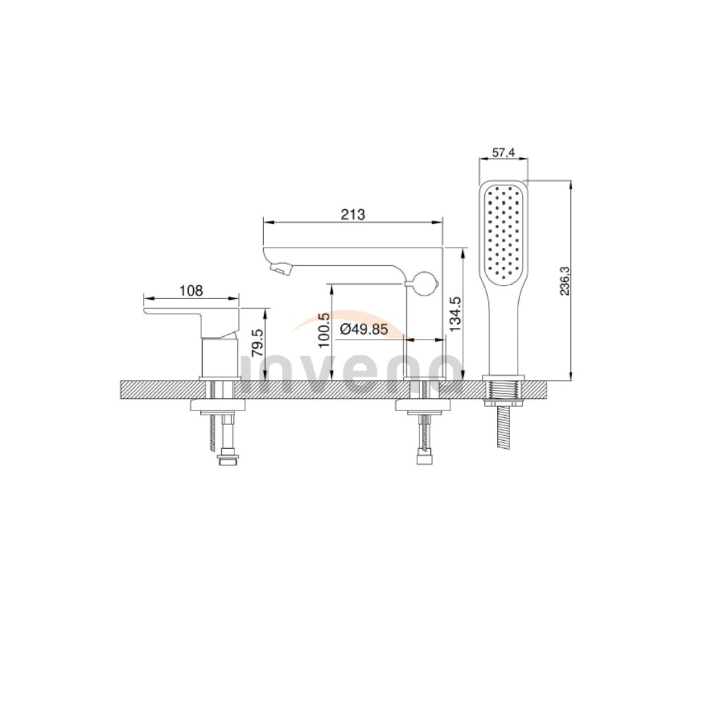 Invena Dokos, 3-otvorová vanová baterie, bílá-chromová, INV-BW-19-S02-V