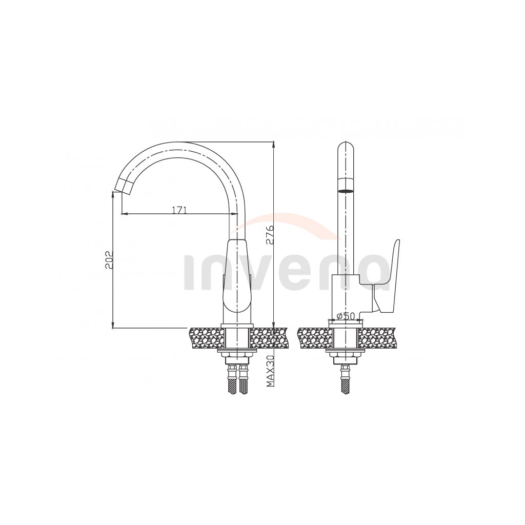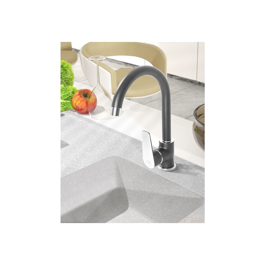 Invena Dokos, dřezová baterie, grafit-chromová, INV-BZ-19-005-V
