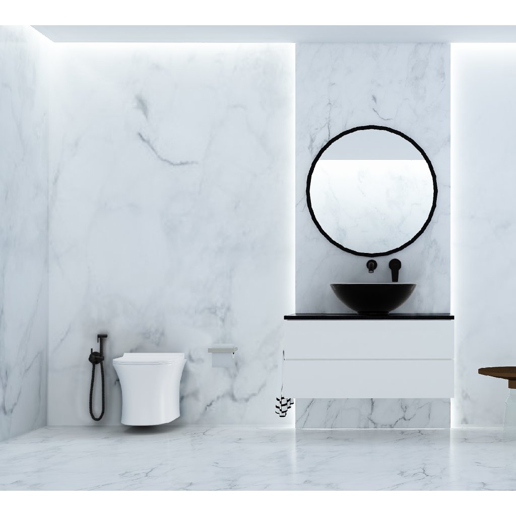Kompaktní kruhový tvar vhodný i do menších koupelen