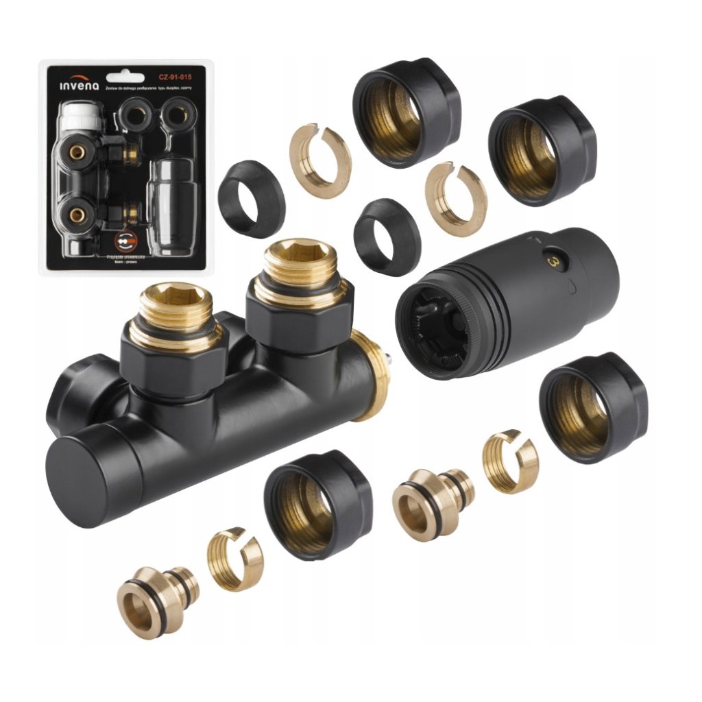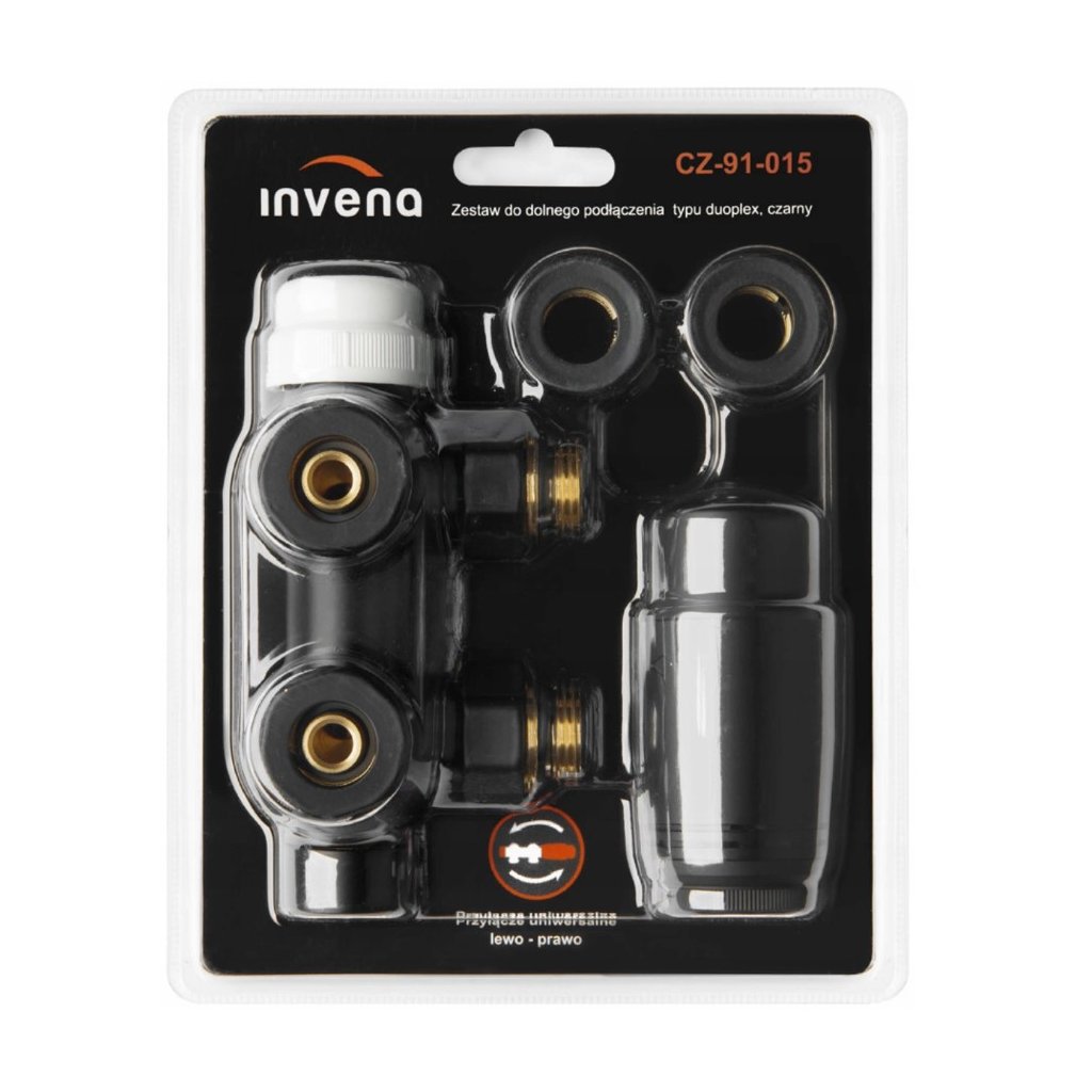 Invena Duoplex, reverzibilní úhlový termostatický ventil na topná tělesa s připojením 50mm, černá, CZ-91-015