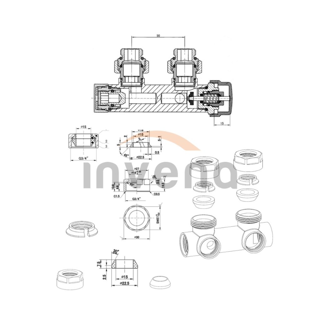 - připojení k radiátoru 1/2 pro instalace z mědi 15mm a PEX 16mm