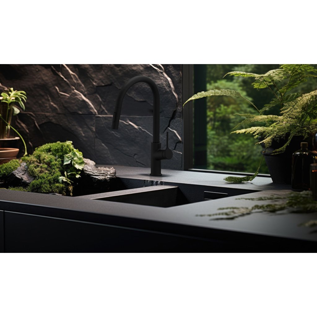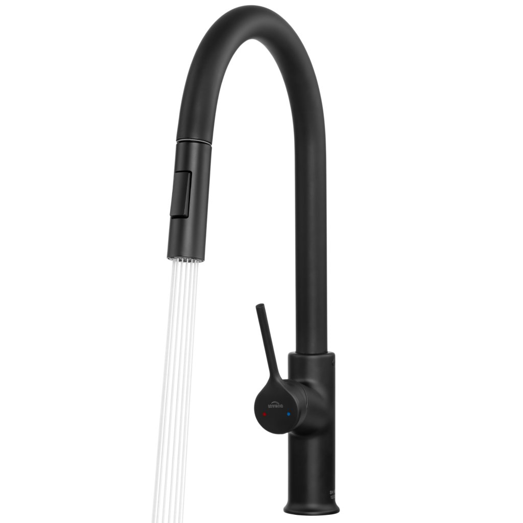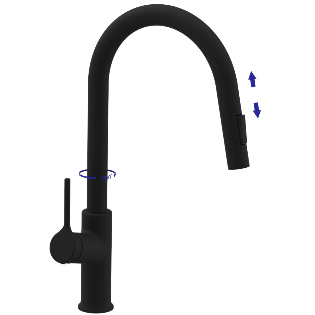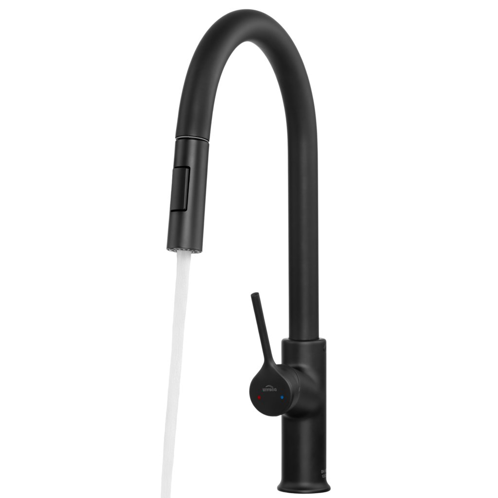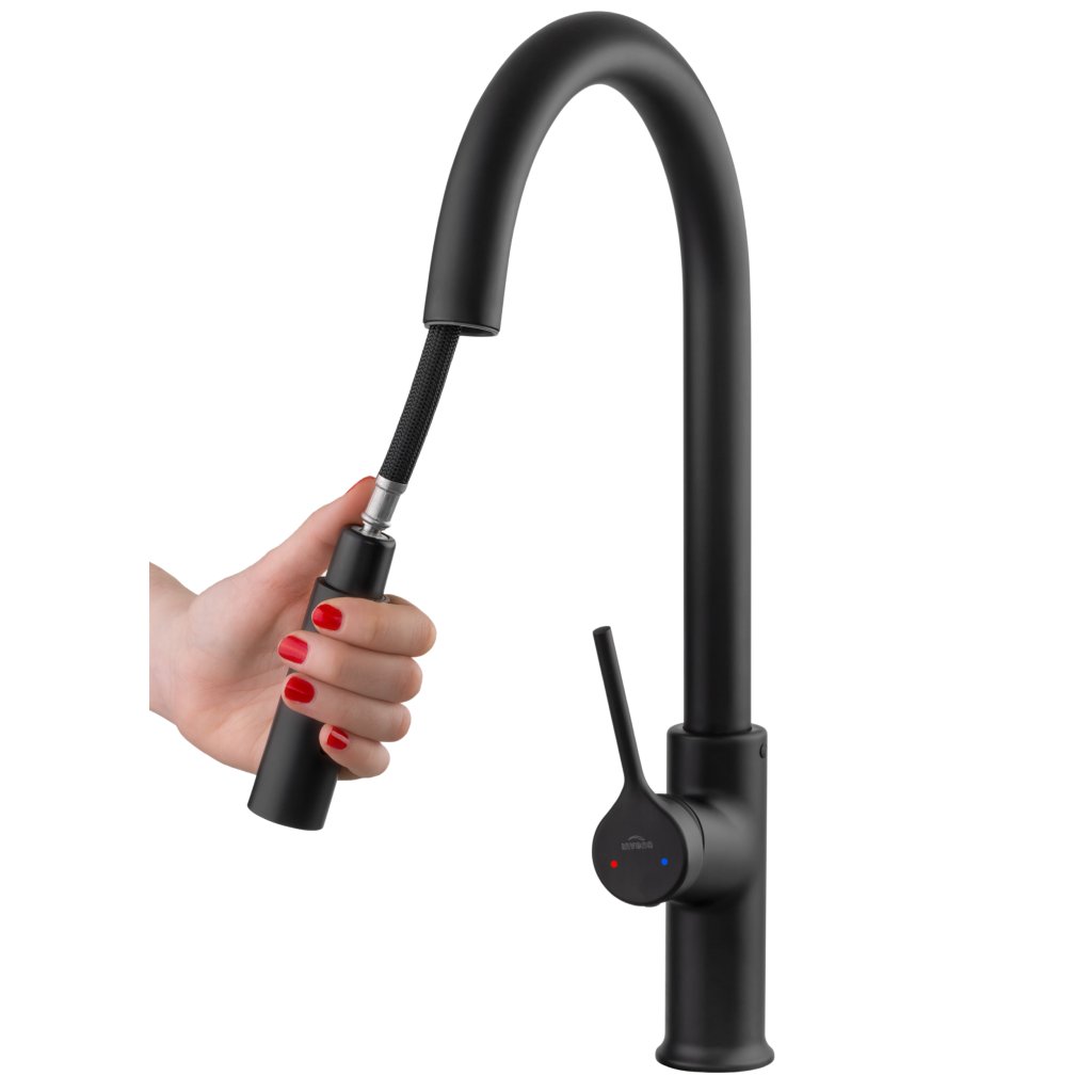 Invena Farsala, dřezová baterie s výsuvnou 2-funkční výlevkou h-433, černá matná, INV-BZ-40-U04-S