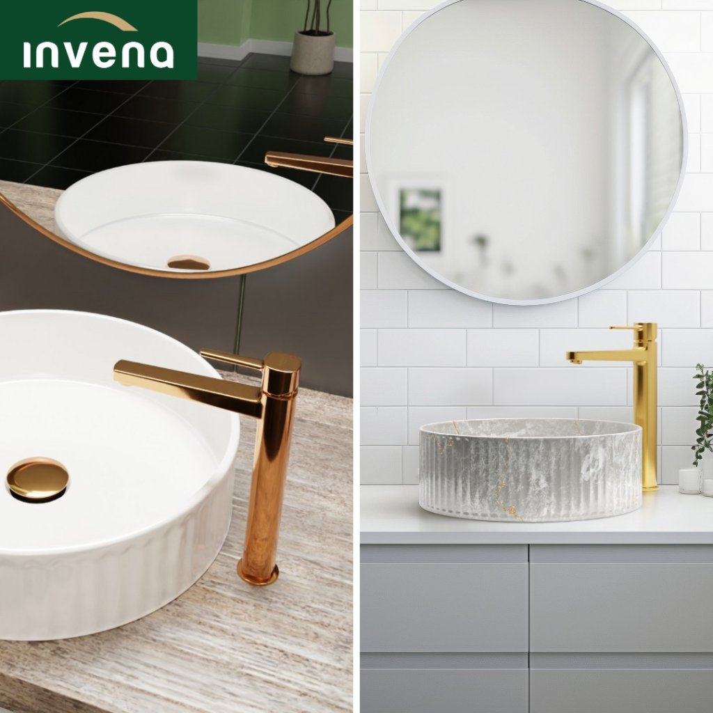 Invena Glamour Trend, vysoká umyvadlová baterie, zlatá lesklá, BU-02-W09-V