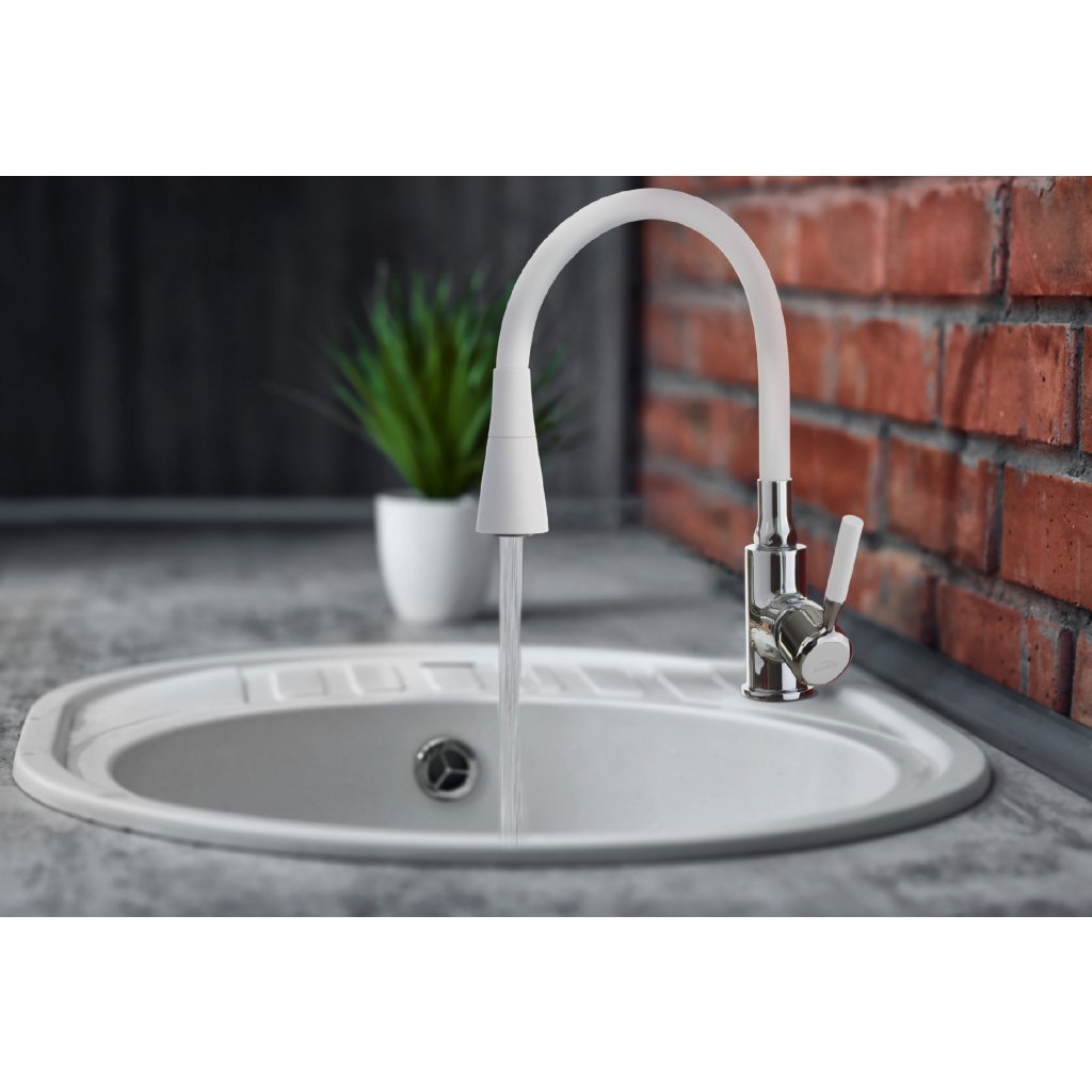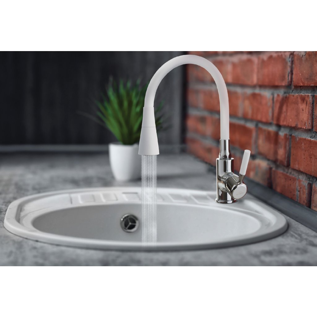 Invena Hula, vysoká dřezová baterie 2-funkční, bílá-chromová, INV-BZ-85-L02-L
