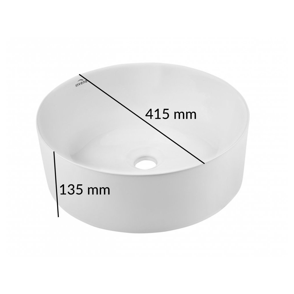 Invena Keto, keramické umyvadlo na desku 420x420x135 mm, bílá lesklá, INV-CE-14-001-C